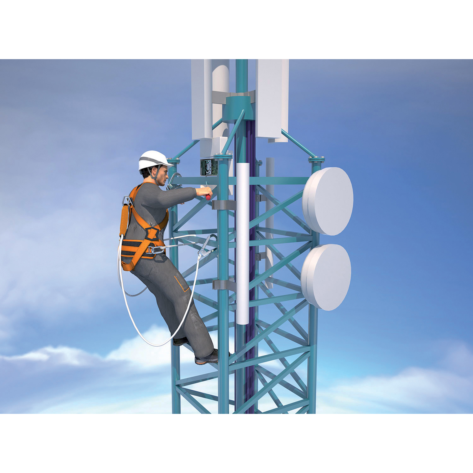 POSITIONNING & SCAFFOLDING – Kit antichute prêt à l’emploi : Harnais 2 points d’accrochage antichute (dorsal – sternal). 2 boucles de réglage. 2 plaques latérales de réglage. Ceinture de maintien (Réf. HAR14). Longe de maintien au travail réglable par réducteur. Longueur de 1,1 à 2 m. Corde toronnée Ø 12 mm (Réf. EX021). Antichute à absorbeur d’énergie en corde toronnée double (Y) Ø 12mm. Longueur 2 m. 1 mousqueton AM002, 2 crochets AM022 (Réf. AN211200CDD). 2 connecteurs AM002.